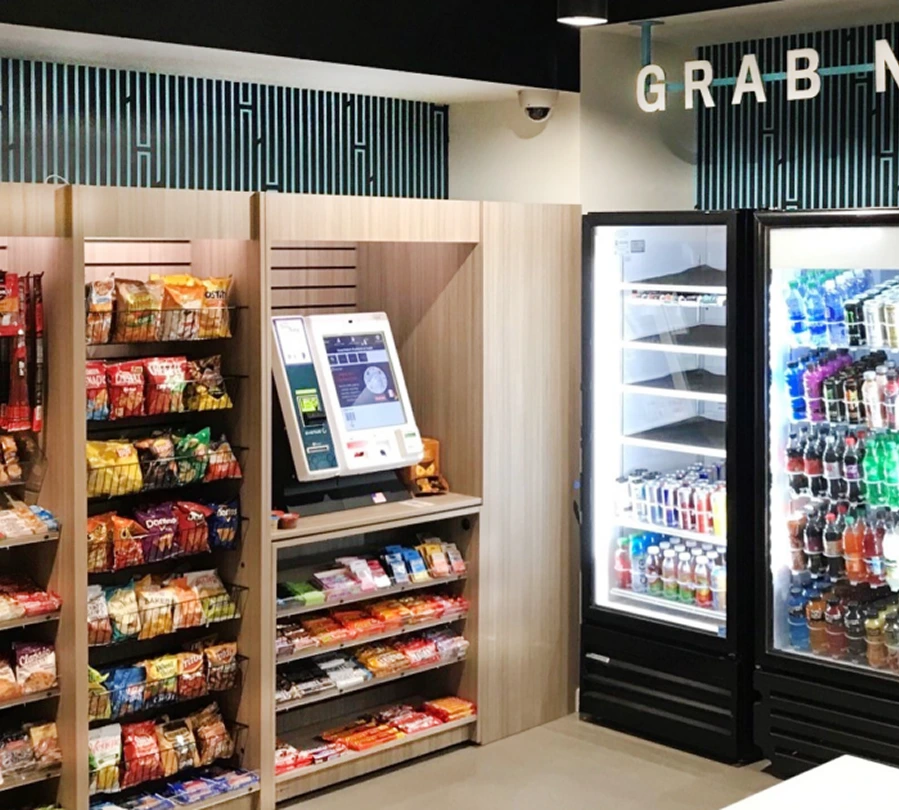 A micro market is a self-serve, unattended retail space stocked with snacks, drinks, fresh meals, and everyday essentials. Unlike traditional vending, micro markets offer open shelving, coolers, and a self-checkout kiosk (or mobile pay). This creates a convenient “grab & go” store experience right inside your workplace, healthcare facility, or residential community.
